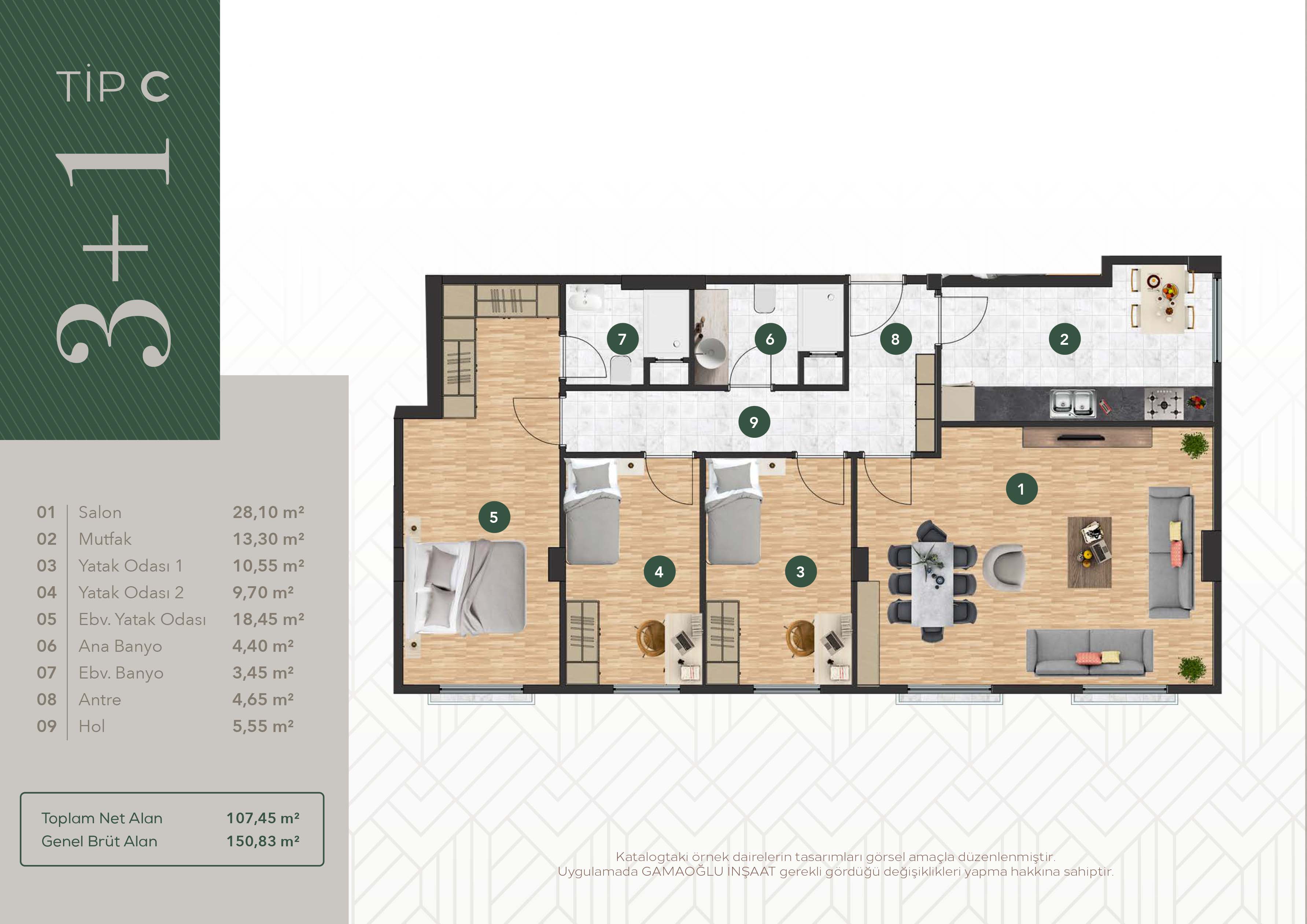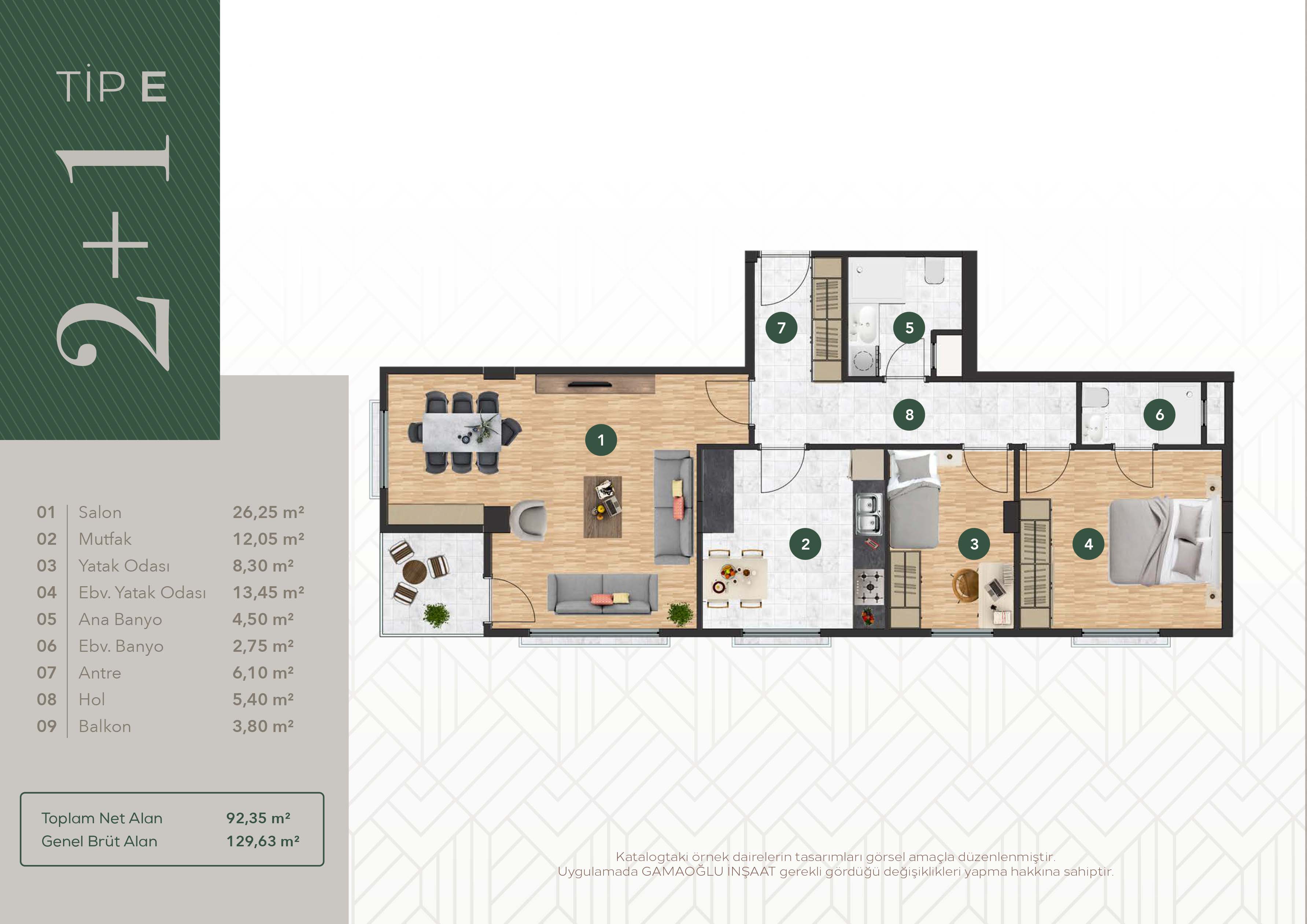 In Hasbahçe Çengelköy, prestigious apartments that will meet all your needs in the city are waiting for you. With its architecture suitable for Çengelköy culture, wide landscape areas, indoor parking and underfloor heating systems; Our project, which consists of 5 blocks and 129 flats, with 5 floors above the garden floor, offers you diversity with 2+1, 3+1, 4+1 and 5+1 flats.
